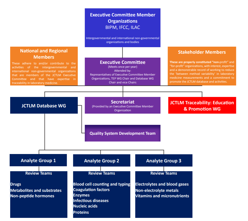 JCTLM是国际上检验医学标准化最权威的组织机构,由国际计量局(BIPM)、国际临床化学与检验医学联合会(IFCC)和国际实验室认可合作组织(ILAC)联合成立,致力于向全球公布满足其相关技术要求的国际参考物质、参考方法和参考测量服务实验室等信息。目前,JCTLM数据库按分析物分为酶学、代谢物和底物、电解质、非肽类激素、蛋白等14类。