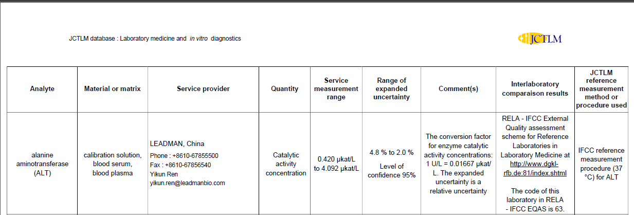 喜讯!爱游戏(aty)中国官方网站医学参考实验室正式进入JCTLM参考测量服务实验室数据库