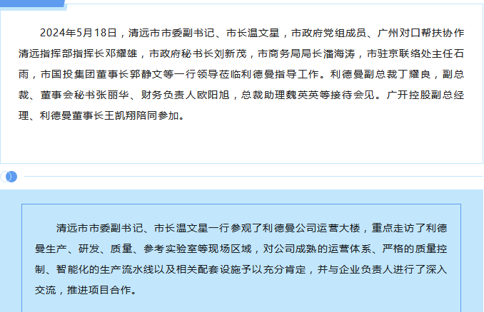 清远市市委副书记、市长温文星一行 莅临爱游戏(aty)中国官方网站指导工作