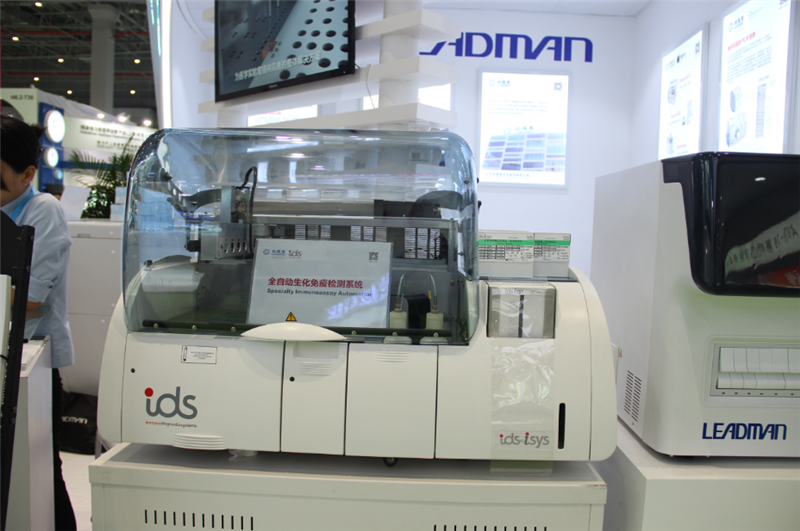 展会上,IDS-iSYS全自动生化免疫分析仪成为众多观众关注的焦点。IDS-iSYS引领全球的骨代谢、钙代谢、高血压、生长因子、自身免疫等特色菜单,具有最广泛的拓展领域:血管钙化、自身免疫、传染病、特种蛋白等。其创新设计也是吸引众多观众的原因之一:IDS-iSYS的智能凝块检测功能iCM,可防止检测中止,最大化节省时间、提高工作效率;仪器中独特的高压清洗站和专用清洗液,能有效的防止交叉污染而无需额外维护;Walk-away系统和连续加载功能真正实现简易操作。人性化的贴心设计为IDS-iSYS增加了更多人气。